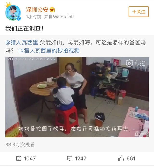 视频在广大网友的关注下,由于被广泛传播,立即也引起了官方的重视,深圳公安立刻进行了关注并调查。